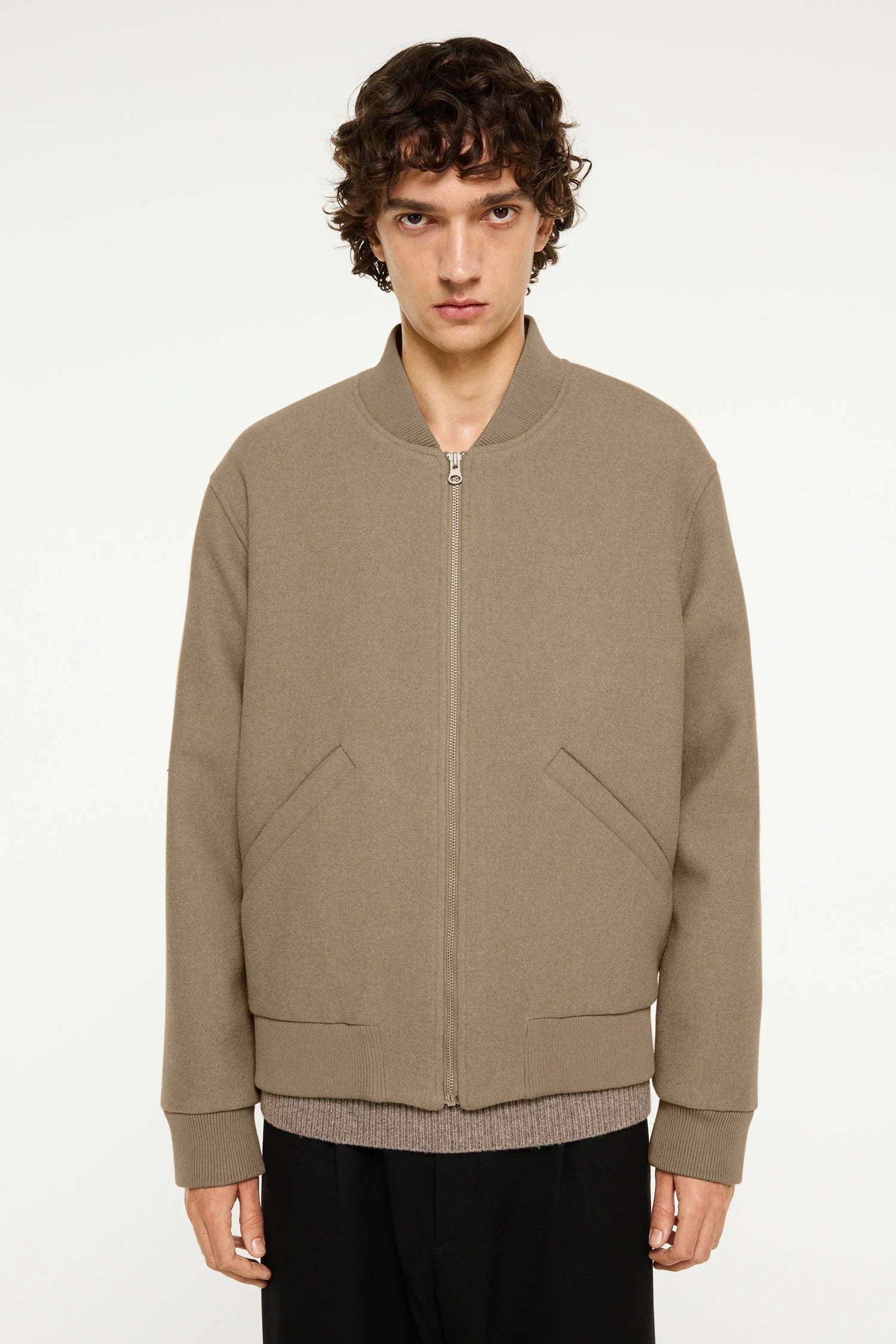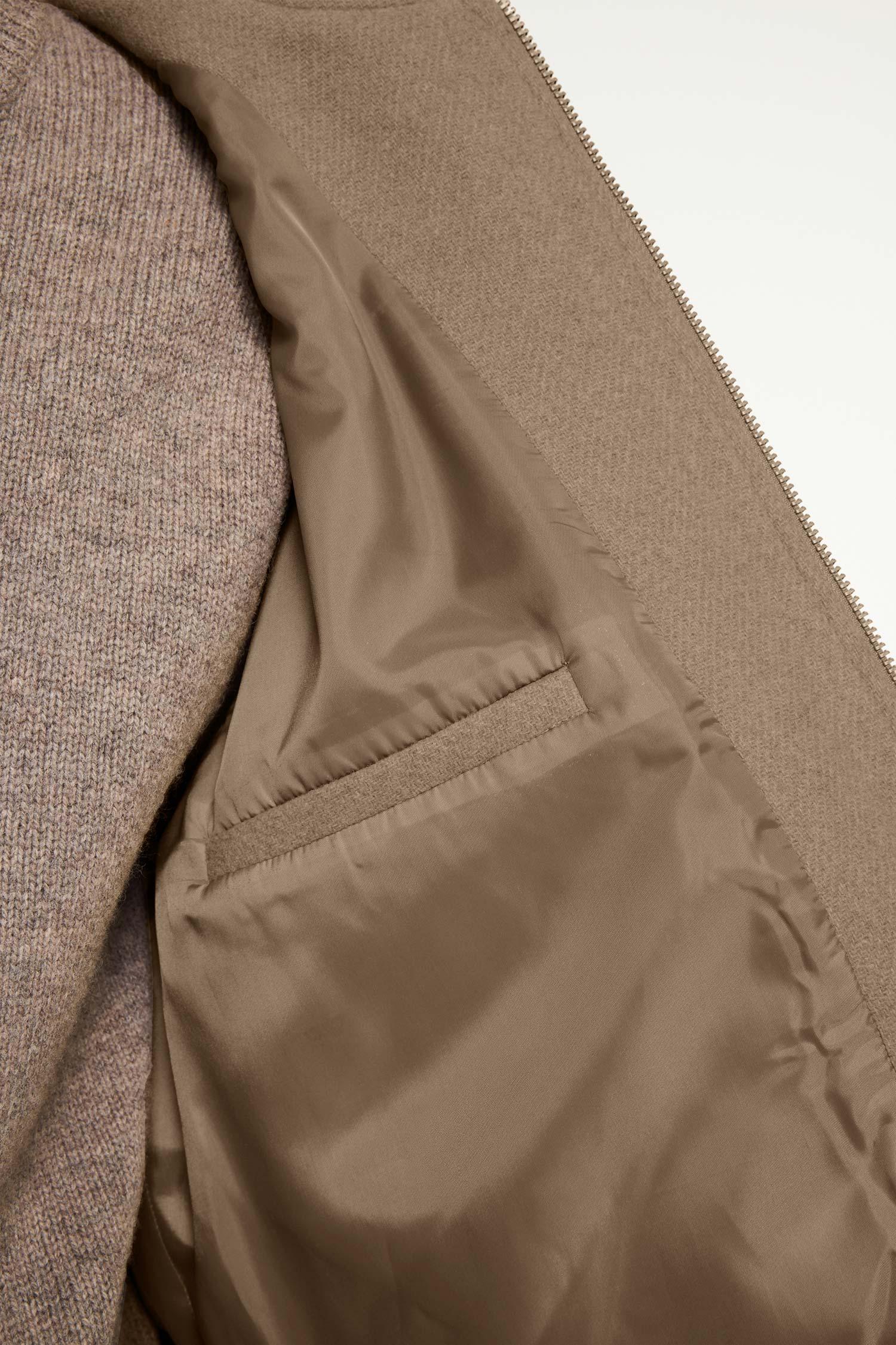 Ylve ist eine elegante Bomberjacke aus kräftigem Wollstoff mit gerippten Abschlüssen und Leistentaschen. Eine zeitlose Jacke, die Stil und Wärme vereint.